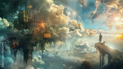 I imagine a serene landscape with a dramatic sky filled with clouds and the soft glow of the sun, casting a warm light over the scene The image captures the beauty of nature