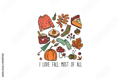 I Love fall most of All, Fall Autumn PNG sublimation Design