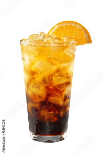 Iced americano mixed orange juice in glass, isolated on transparent background.