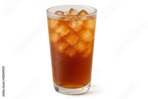 Iced tea in a tall glass with melting ice cubes, offering sweet cold refreshment, transparent background beverage