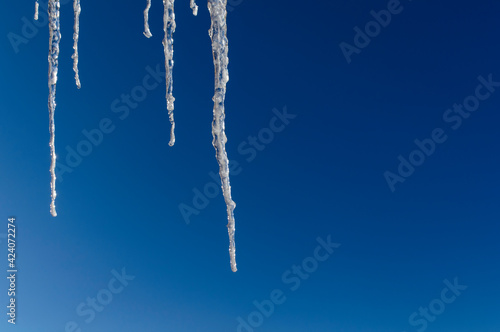 icicles against the blue sky. copy space