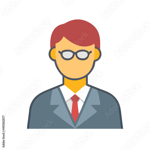 man, person, businessman, icon, avatar, character, suit, attaching, goggles, office, professional, vector, illustration, graphic, symbol, isolated, design, men at work, employee, adult, face, male, corporate, formal, red tie, cartoon, flat, uniform, business, job, occupation, leader, manager, executive, authority, profile, portrait, confident, successful