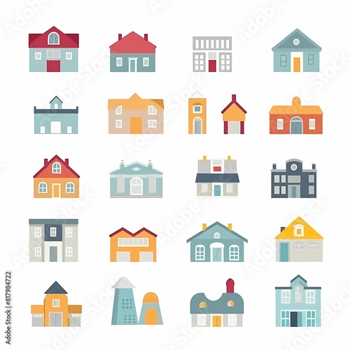 Icons of houses and buildings isolated on white. Illustration in vector format