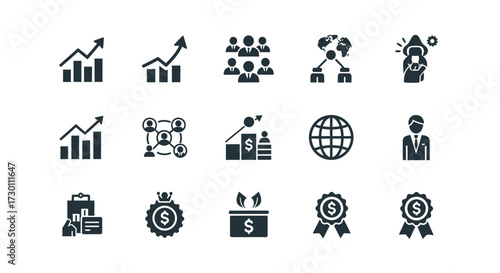 Icons Representing Business Growth Teamwork Global Success Financial Achievement and Leadership