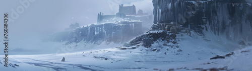 Icy Citadel: A Squat Castle Overlooking a Snowy Expanse