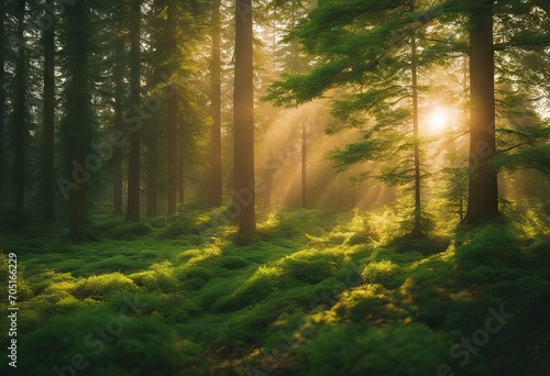 Idyllic forest at sunrise stock photoForest Nature Tree Backgrounds Green