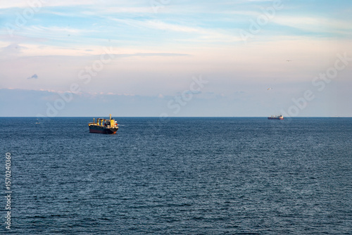 idyllic seascape with cargo ships