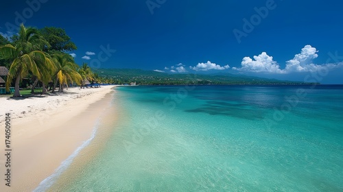 Idyllic Tropical Beach Scene Turquoise Water White Sand Palm Trees