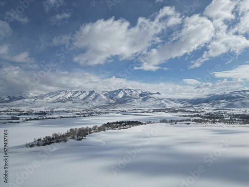 Idyllic winter scene of Pinview Reservoir Eden, Utah