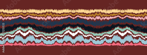 Ikat border. Geometric folk ornament. Ink on clothes. Tribal vector texture. Seamless striped pattern in Aztec style. Ethnic embroidery. Indian, Scandinavian, Gypsy, Mexican, African rug.