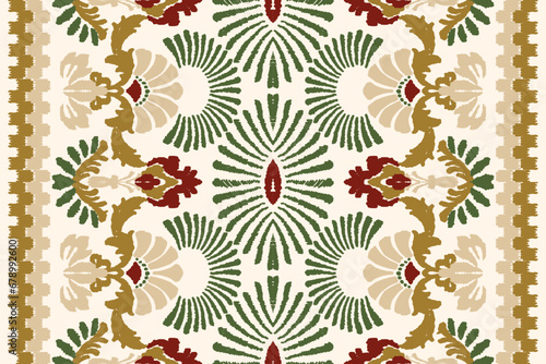 Ikat floral paisley embroidery on white background. Traditional ethnic ikat, aztec abstract vector pattern, seamless pattern in tribal, folk embroidery and mexican design for texture,fabric,clothing
