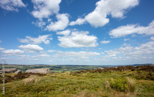 beautiful day, england, hill, horizon, moor, rock formation, yorkshire, beautiful, calm, cloud, cloud, colours, colours, colours, colours, countryside, dramatic, field, freedom, grass, grazing, green, heath, high, hiking, hill, landscape, mountain, mountain, natural, nature, park, path, peace, rural, serene, sky, sky, stone, masonry, stony, summer