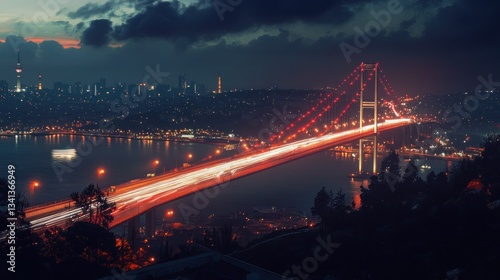bridge, night, city, light, traffic, skyline, urban, water, transportation, landmark, city landscape, evening, suspension, architecture, illuminated, river, structure, travel, dark, scenery, metropolis, cable, horizon, scenic, roadway, automobile, tour tourism, modern, outdoors, dusk, background, glowing, connection, transport, panorama, aerial, infrastructure, bay, bright, construction, perspective, destination
