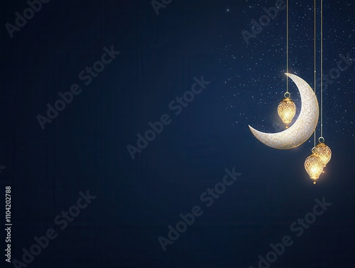 Illuminated crescent moon and lanterns night sky digital art serene atmosphere abstract view tranquility concept
