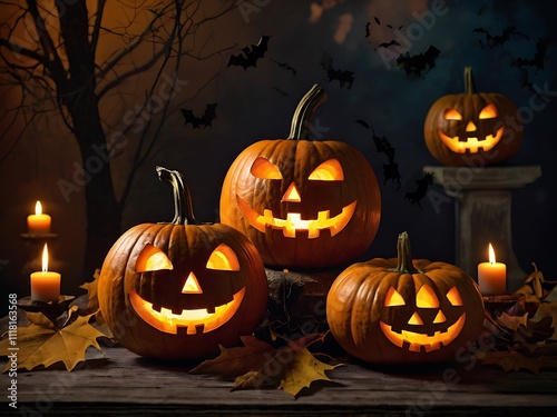 Illuminated Jack O Lanterns Autumnal Halloween Scene