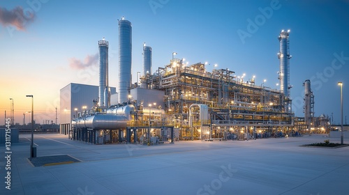 refinery, industrial, night time, scene, oil, gas, energy, plant, facility, factory, production, petrochemical, chemical, tower, pipe, storage, equipment, technology, infrastructure, twilight, dusk, sunset, landscape, architecture, urban, city landscape, environment, business, industry, illumination, processing, structure, utility, engineering, manufacturing, fuel, power, commerce, skyline, industrial complex