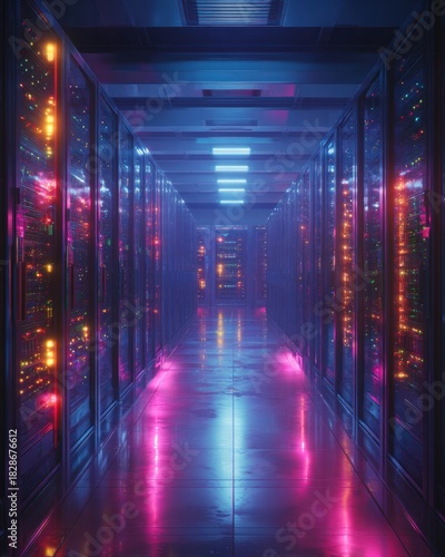 server room, server, computer, technology, hallway, illumination, pink, blue, light, neon, futuristic, infrastructure, networking, computing, hardware, rack, digital, information, data storage, processing, cooling, maintenance, enterprise, equipment, power, connectivity, cyberspace, cable, information technology, system, network, architecture, center, telecom, communication