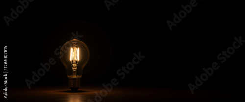 Illuminated vintage light bulb glowing softly in a dark setting creating a warm and inviting atmosphere representing creativity and inspiration