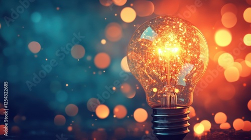 Illuminating creativity sparkling light bulb in a colorful bokeh background