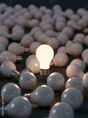 Illuminating ideas unique light bulb amongst ordinary ones digital art minimalistic design creative concept
