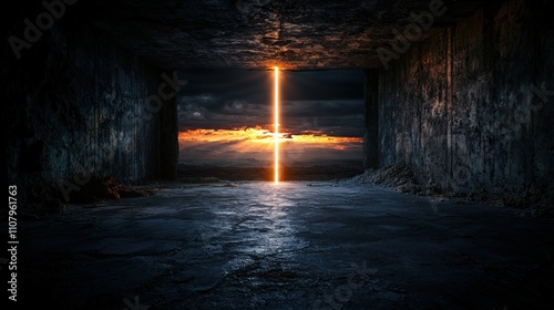 Illuminating the void a single line of light breaking shadows in a surreal hopeful landscape