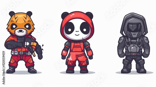 illustraction of techwear chibi panda ninjas robot mecha future JAPANESE VIBE detailed design for streetwaer and urban style t-shirts design