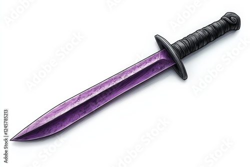 sword, weapon, blade, fantasy, illustration, purple, steel, sharp, mediaeval, design, isolated, white background, mystical, artistic, battle, warrior, combat, magic, graphic, adventure, glowing, sleek, legendary, tactical, ancient, history, futuristic, engraving, detailed, collectable, craftsmanship, elegance, concept, unique, creative, decoration, samurai, epic, knife, dagger, handle, antique, object