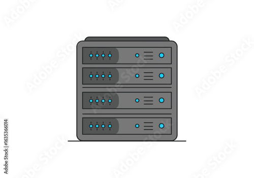 Illustrated Gray Server Rack with Blue Indicator Lights