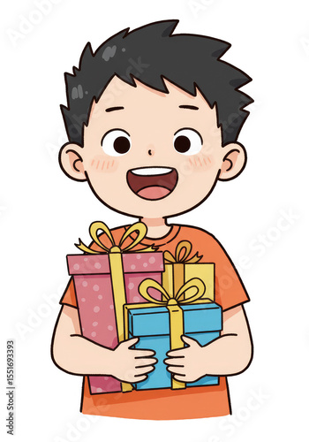 Illustration Boy Holding Gifts Cartoon Style on Transparent Background