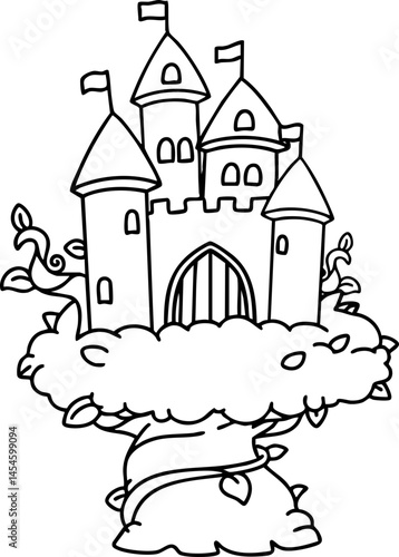 castle, tree, forest, decoration, building, cartoon, hand, painting, drawing, illustration, clip art, element, hand-drawn, line art, outline, draw, fantasy, magic, fairy, tale, cute, antique, ornament
