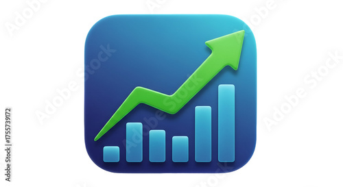 Illustration of a bar graph with an upward trending arrow, isolated on transparent background
