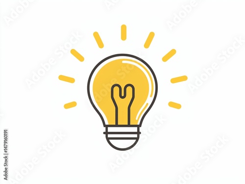 Illustration of a Bright Light Bulb with Radiating Rays