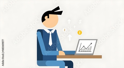 man, laptop, desk, business, finance, chart, growth, success, investment, money, coin, dollar, arrow, upward, trend, economy, market, profit, gain, wealth, career, job, office, work, employee, executive, professional, attaching, shirt, suit, illustration, graphic, design, cartoon, flat, style, modern, corporate, strategy, planning, analysis, datum, report, presentation, meeting, project, management, achievement, goal
