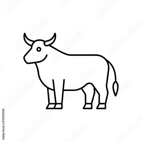 Illustration of a cow with a simple outline style on transparent background