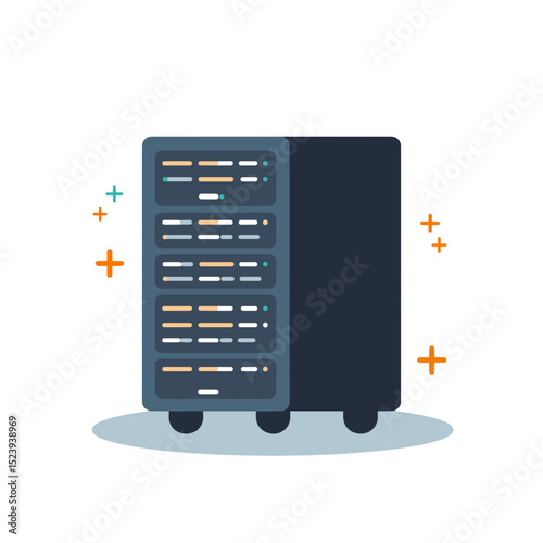 Illustration of a Data Server Rack with Multiple Bays and Wheels for Easy Movement, Representing Technology and Data Management