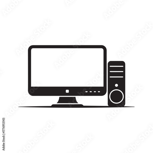 Illustration of a desktop computer with a monitor and a computer case isolated on white background