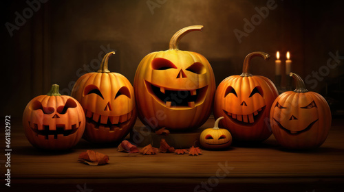 Illustration of a halloween pumpkins in dark yellow colours