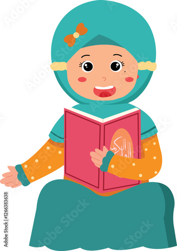 Illustration of a Happy Girl Reading a Quran