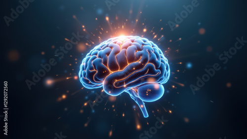 Illustration of a human brain with futuristic flames, representing artificial general intelligence or advanced technology.