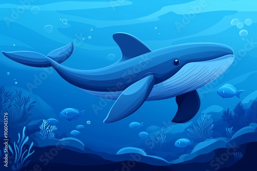 illustration of a majestic blue whale swimming gracefully in the deep blue ocean.