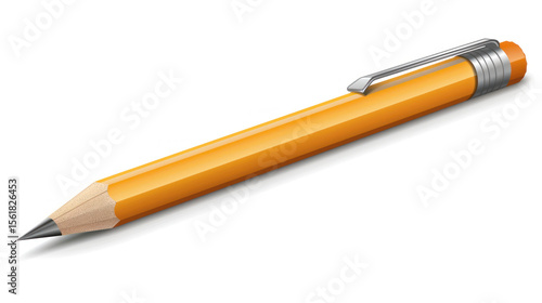 Illustration of a realistic orange pencil with a sharpened tip and metallic clip on a clean white background for educational purposes