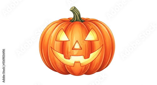 Illustration of a smiling jack-o'-lantern with glowing features for Halloween decoration