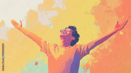 Illustration of a very happy man, expressing joy and energy, desire to live