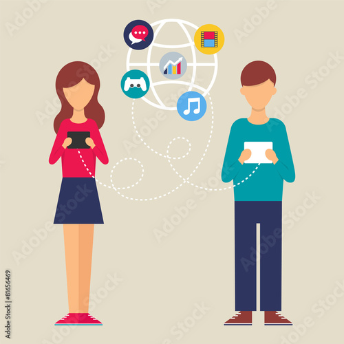 social, network, media, cyberspace, technology, character, man, male, woman, female, person, human, using, tablet, communication, vector, concept, marketing, illustration, icon, web, icon, global, design, mobile, business, computer, background, thing, information, blog, modern, globe, abstract, connection, digital, application, symbol, idea, phone, connect, people, game