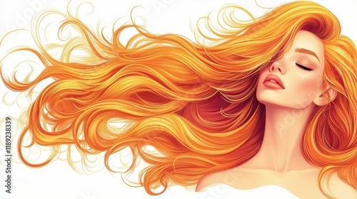 woman, orange, hair, illustration, beauty, serene, flowing, art, vibrant, dreamy, portrait, fantasy, colours, elegant, style, expression, creativity, coiffure, confidence, bright, stunning, feature, warm, tone, graceful, fashionable, trend, femininity, charme, attracted, striking, digital, captivating, detail, softness, design, head shot, visual, aesthetic, character, flow, infinite, elegance, colours, relaxed, radiant, enchanting, whimsical, aethereal