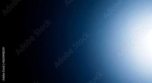 Illustration of abstract dark blue gradient background with bright light effect on the right, smooth color transition and clean modern design
