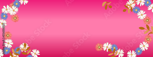 Illustration of beautiful blooming flowers isolated on pink background, copy space.
