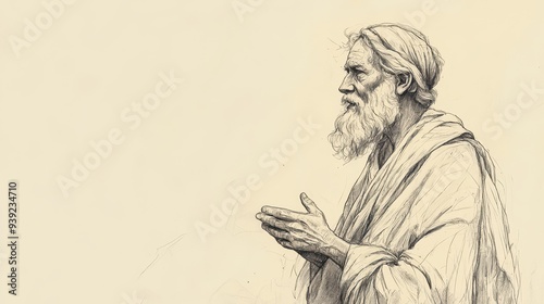 Illustration of Bildad’s Speech - Bildad Speaking with Conviction, Encouraging Job to Seek God and Plead for Mercy, Beige Background