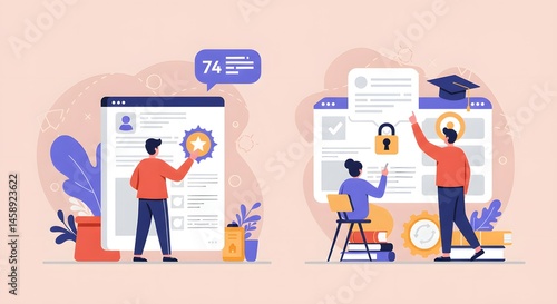 illustration, design, datum, management, technology, education, security, growth, analysis, online, performance, verification, feedback, evaluation, privacy, access, achievement, student, business, strategy, assessment, digital, document, chart, goal, checklist, success, progress, innovation, workplace, communication, research, learning, info, certification, graduation, certificate, resume, planning, review, inspecting, collaboration, tool, workflow, study