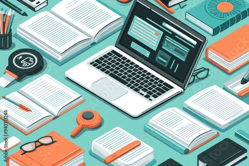 Illustration of educational learning tools set on table created with Generative AI